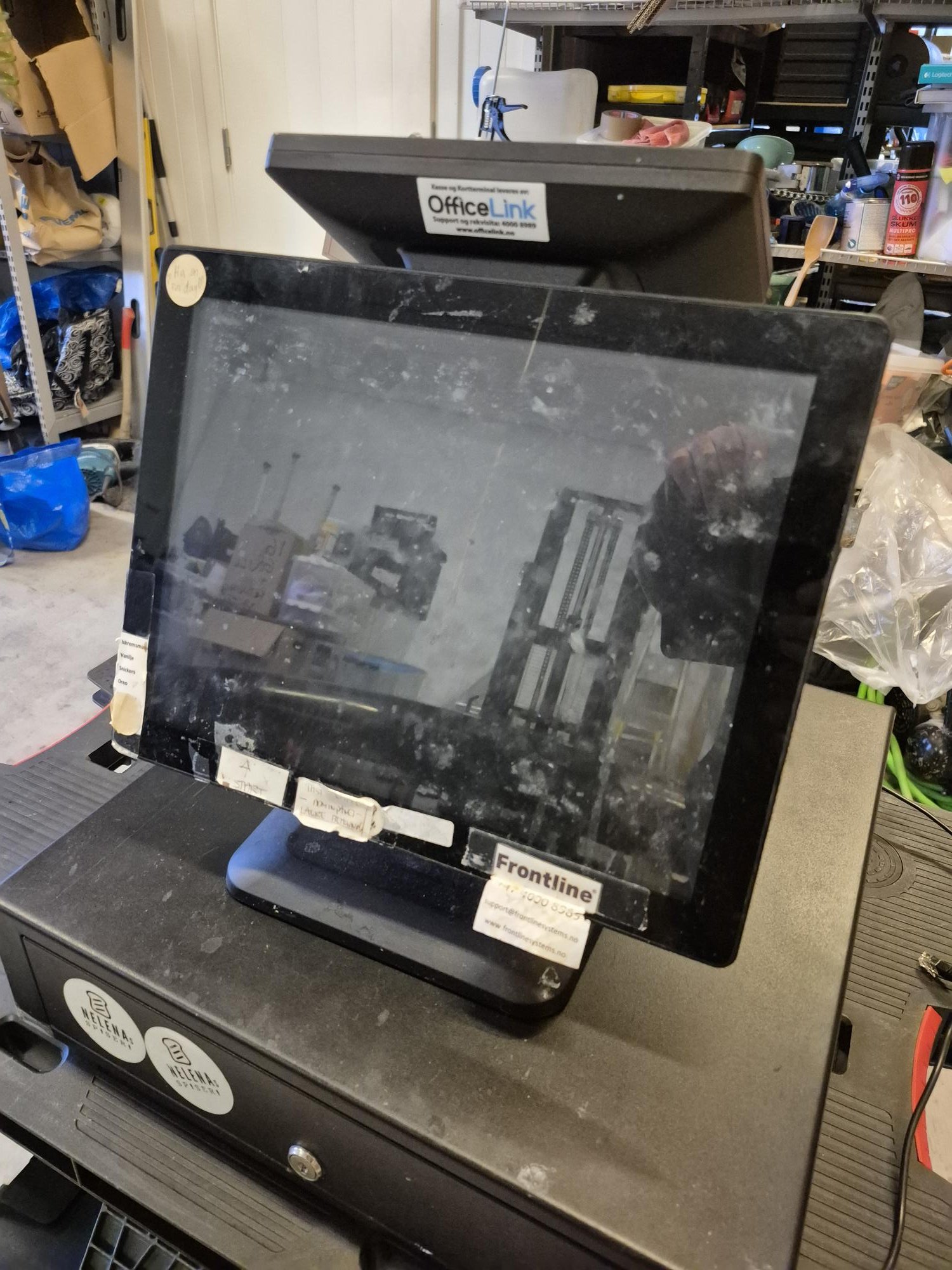 Kasse, kasseskuff, kvitteringsskriver, betalingsterminal.
